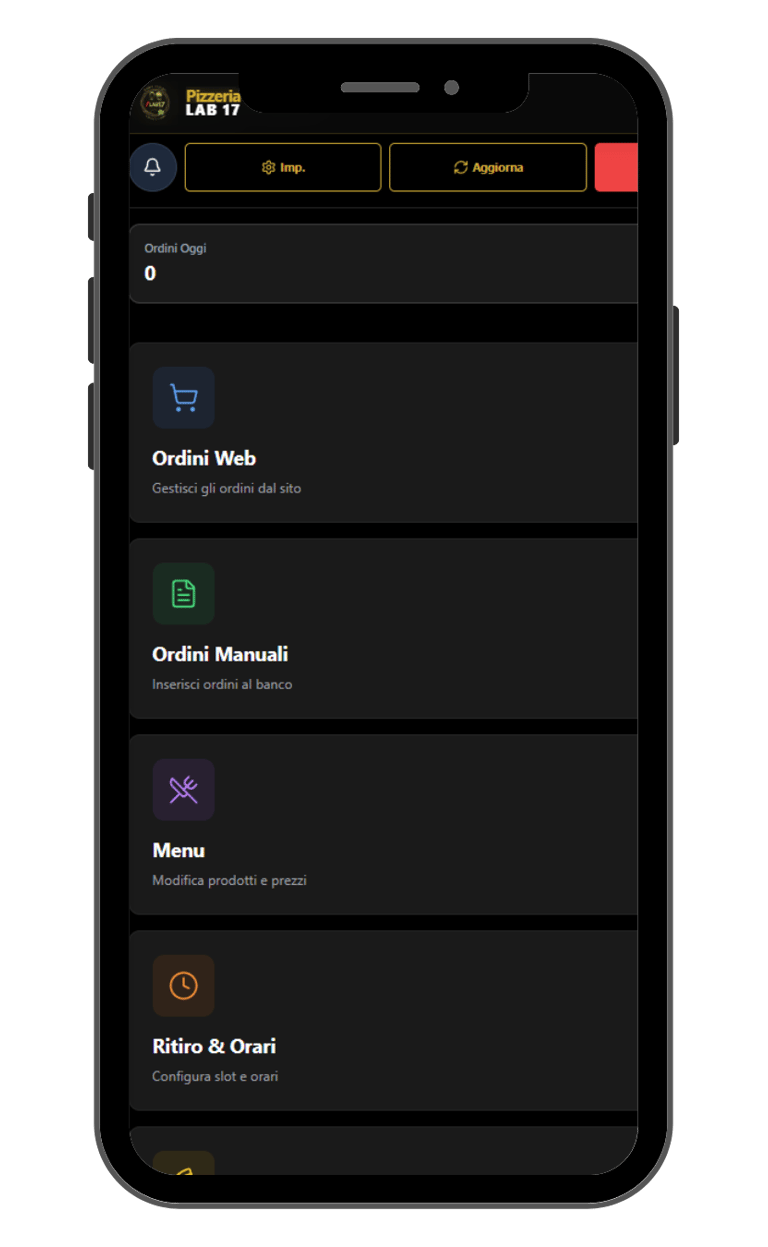 Gestione in Tempo Reale: Ho implementato un pannello di controllo dove il titolare può gestire ordini, incassi e disponibilità del menu.