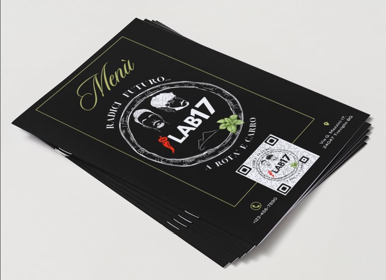 La copertina del menu è il primo punto di contatto fisico. Ma qui c'è anche strategia: ho inserito un QR Code prominente e personalizzato al centro. Questo QR Code non porta a un semplice PDF, ma alla PWA che ho sviluppato, permettendo al cliente seduto al tavolo di ordinare bevande extra o dolci direttamente dal telefono, alleggerendo il lavoro dei camerieri e aumentando le vendite